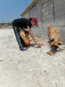 Traigo conmigo al perrito, no pude dejarlo vomita mucho, con tú apoyo sigo rescatando los abandonan sin misericordia, Yolanda Romero Núñez.